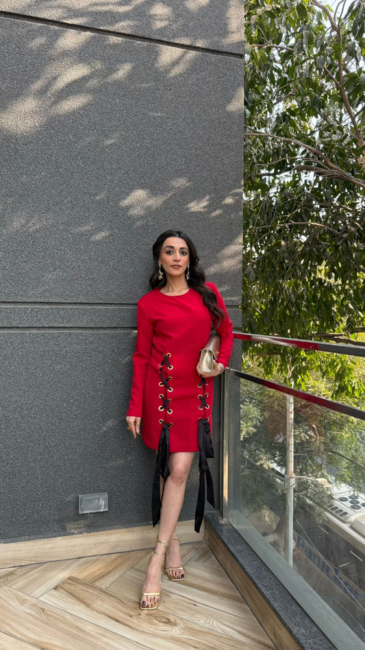 Sana Makbul in our Divasana Rosette dress (Safari)