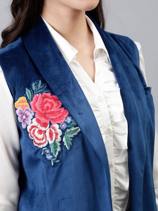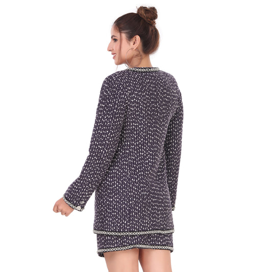 Navy Tweed Coord Set Detailed With A Beaded Lace